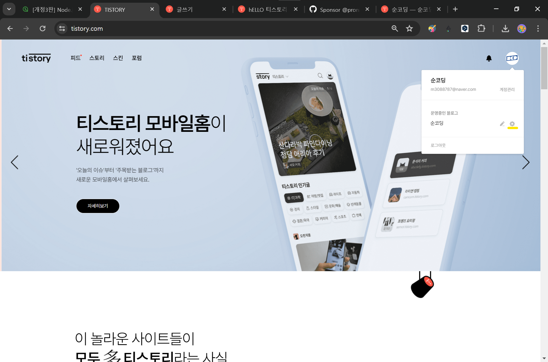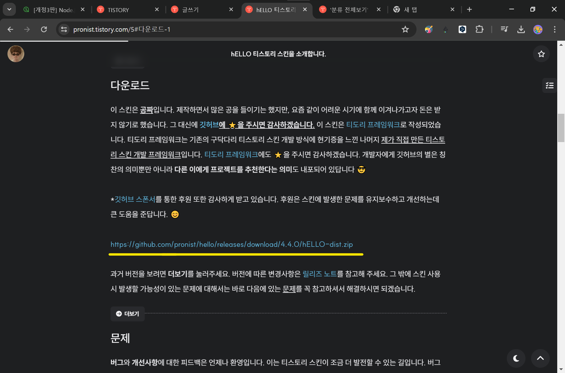 hELLO 는 티스토리에서 많은 블로거분들께 사랑을 받은 스킨입니다. hELLO 티스토리 스킨은 개발자 커뮤니티인 깃허브의 약 천 개에 달하는 티스토리와 관련된 모든 프로젝트 중 가장 많은 별을 받