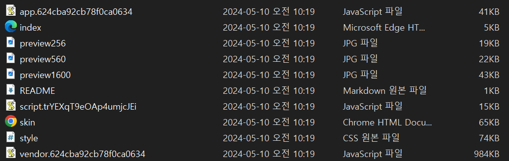 원활한 스킨 등록을 위하여 images 폴더에 있는 모든 파일을 꺼내어 최상위 폴더인 hELLO-dist로 옮길 것 입니다.