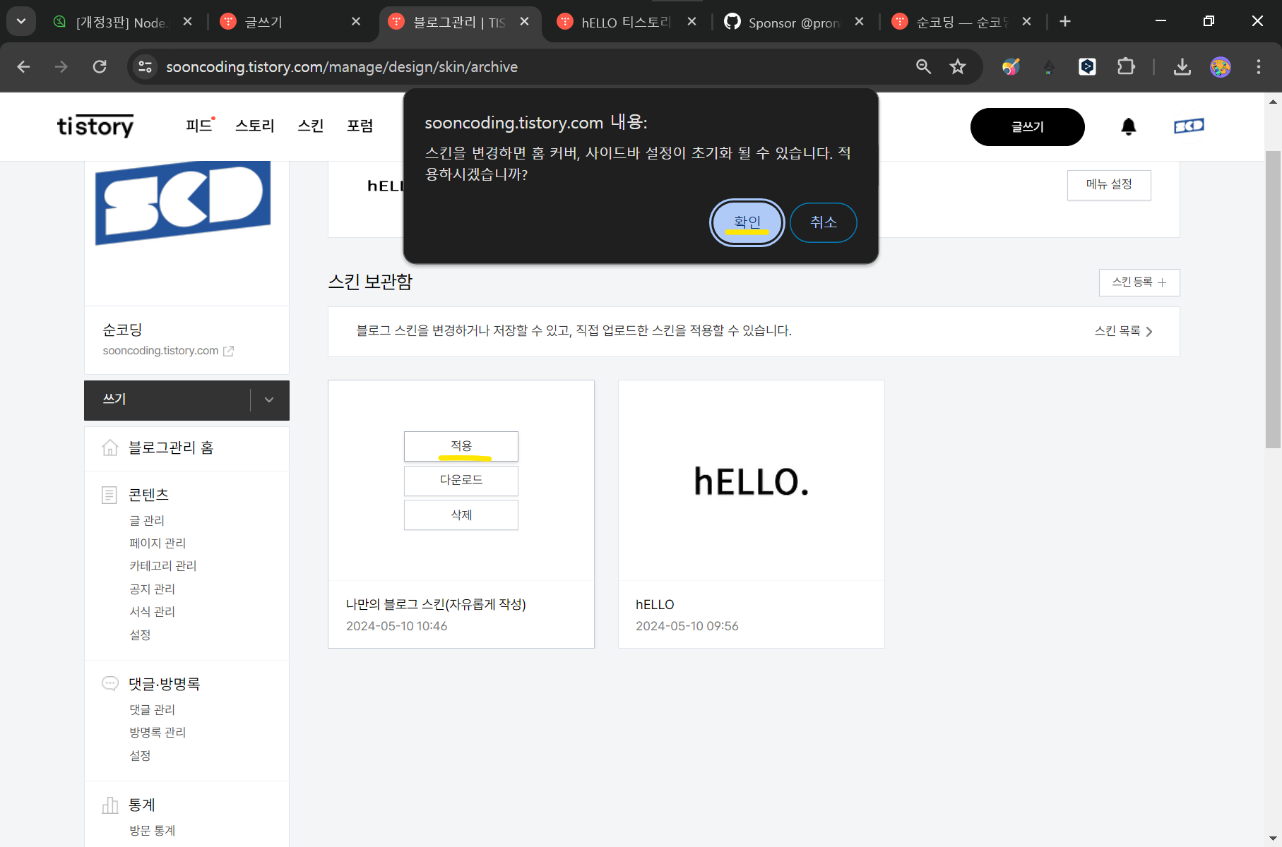 스킨을 적용 시 페이지가 무한로딩됩니다 · pronist hello · Discussion #96