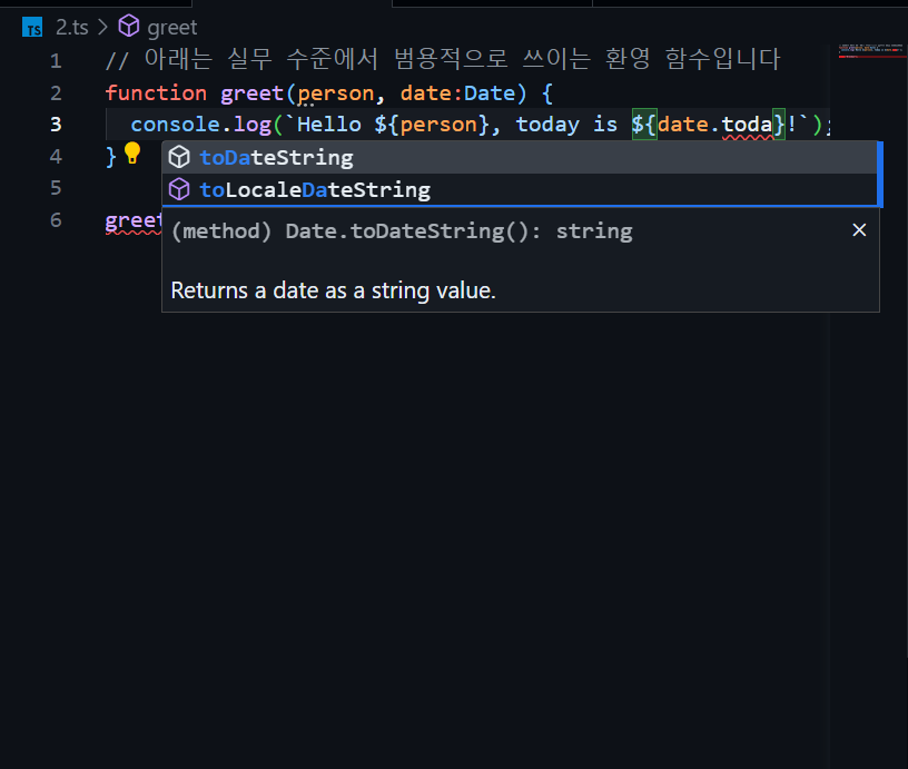 2. 타입을 지정함으로써 해당 타입의 자동완성 기능을 제공한다.