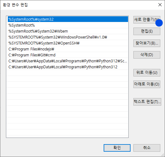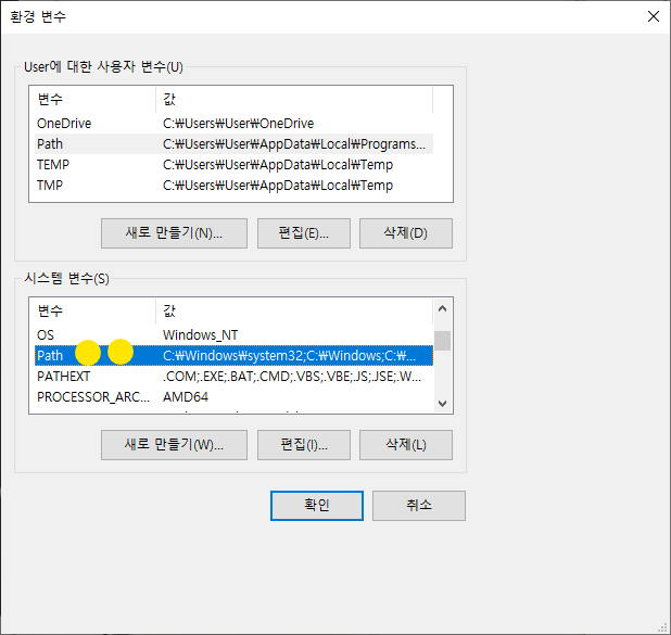 위에서 찾았던 bin 폴더의 경로 복붙 후 확인 클릭