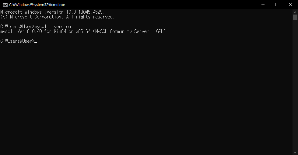 CMD에서 MySQL 버전을 확인하고 위처럼 출력되면 문제해결 완료