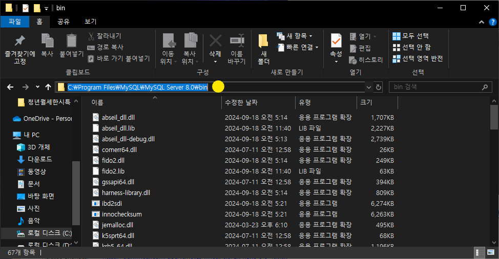 따라서 bin 폴더를 더블 클릭하고 파일경로를 복사한다.