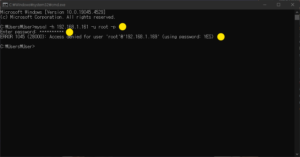 이는 원격에서 로컬 IP 주소에서의 접속을 명시적으로 허용하지 않았기 때문이다.