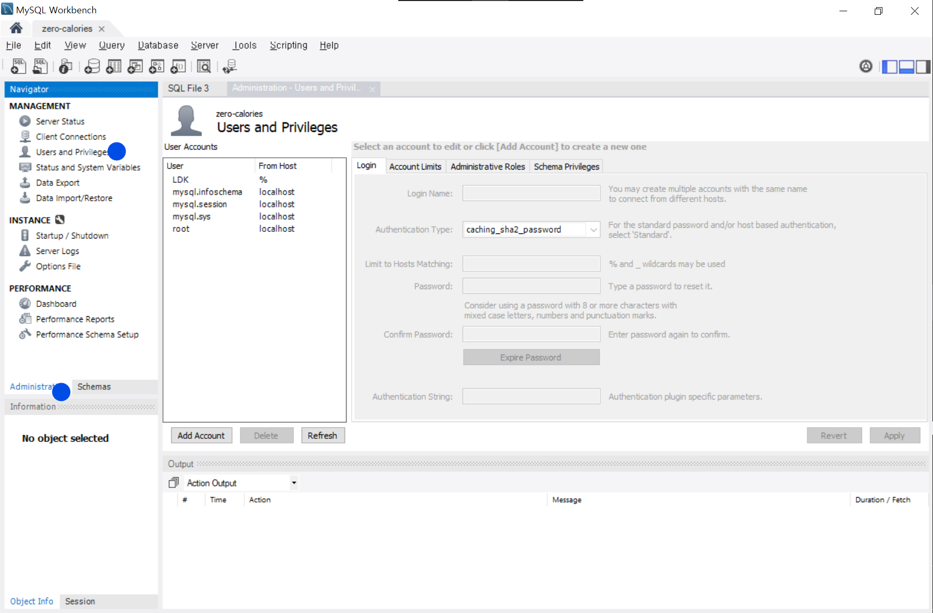 원격 MySQL을 접속한 후 좌측 사이드바에서 Administrator > Users and Privileges 클릭