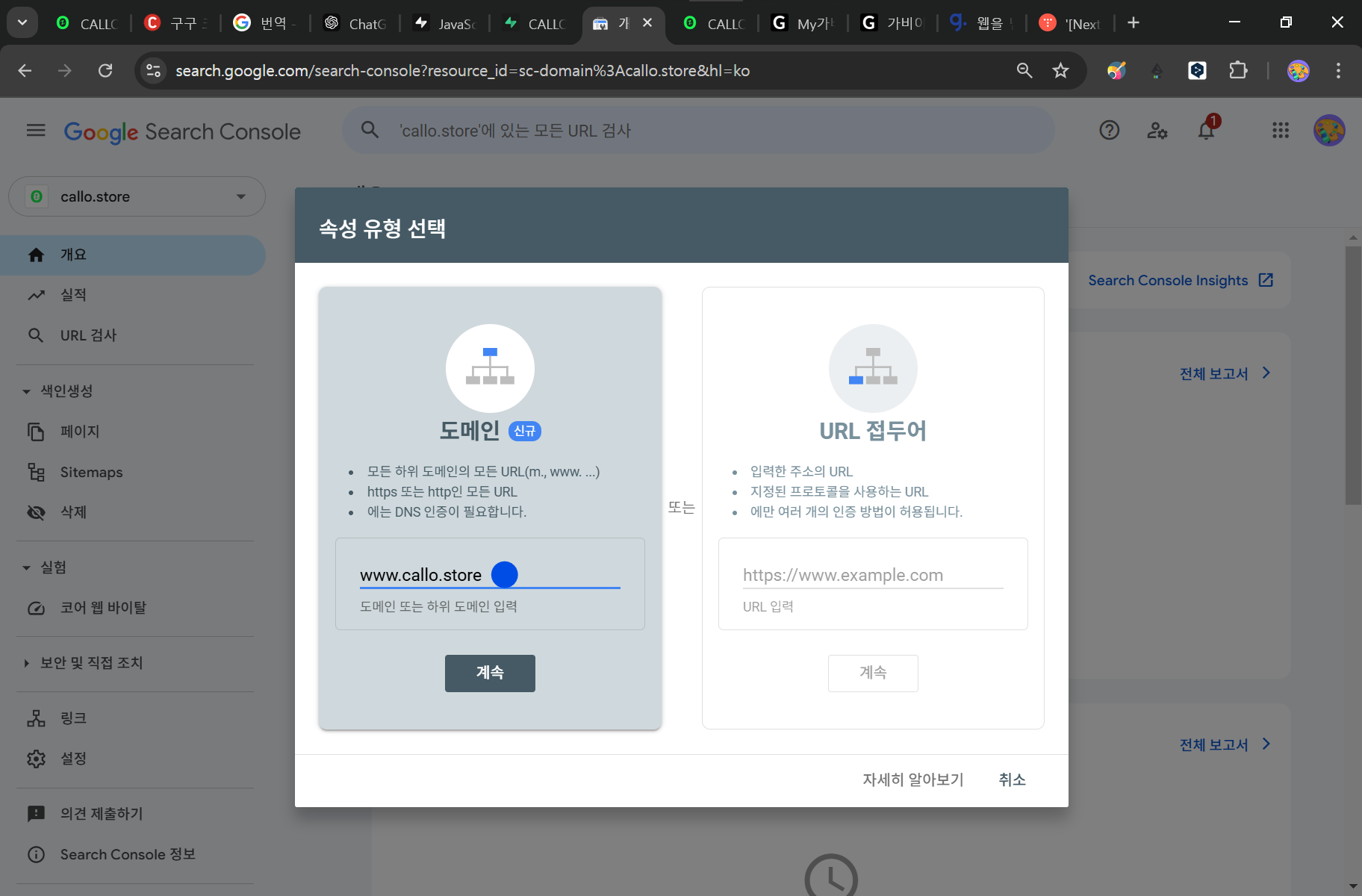 이미 구매한 도메인이 있다면 아래 방법을 통해 도메인 하위의 모든 URL을 구글 서치 콘솔에 한 번에 등록할 수 있습니다.