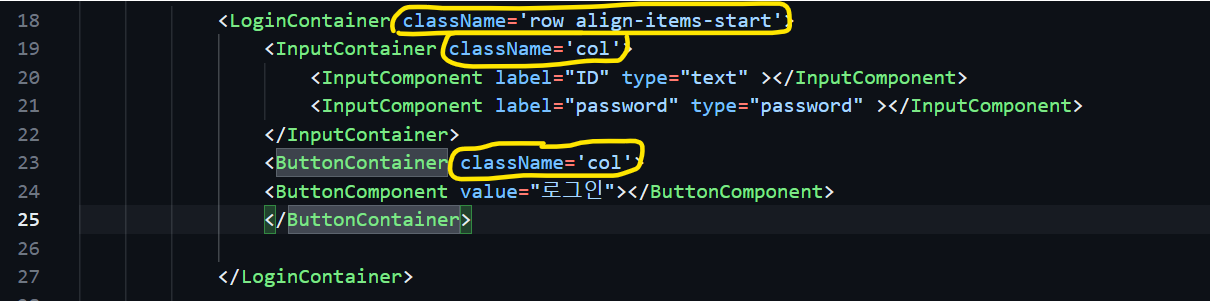 2. 적용하고 싶은 컴포넌트에 클래스를 이용하여 부트스트랩 스타일링을 한다