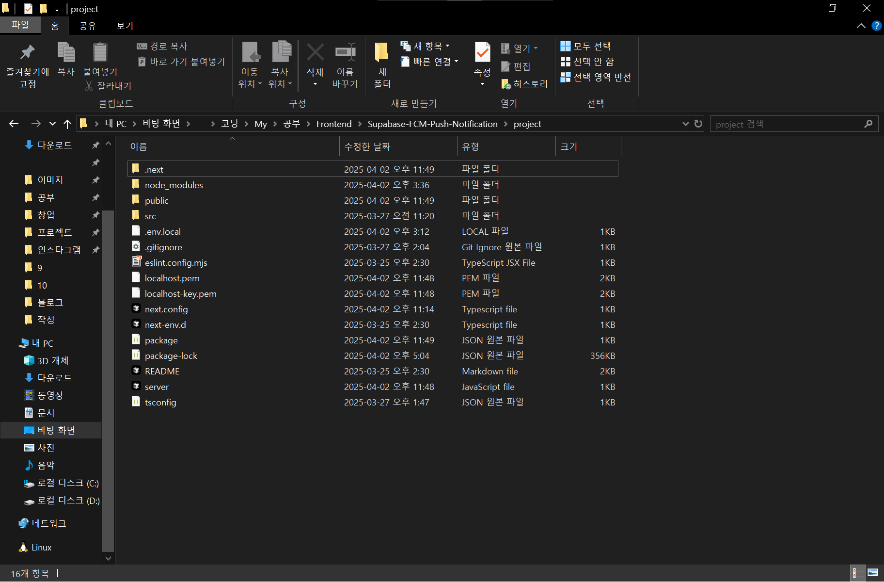 파일 편집기에서 프로젝트 폴더 경로로 이동합니다.