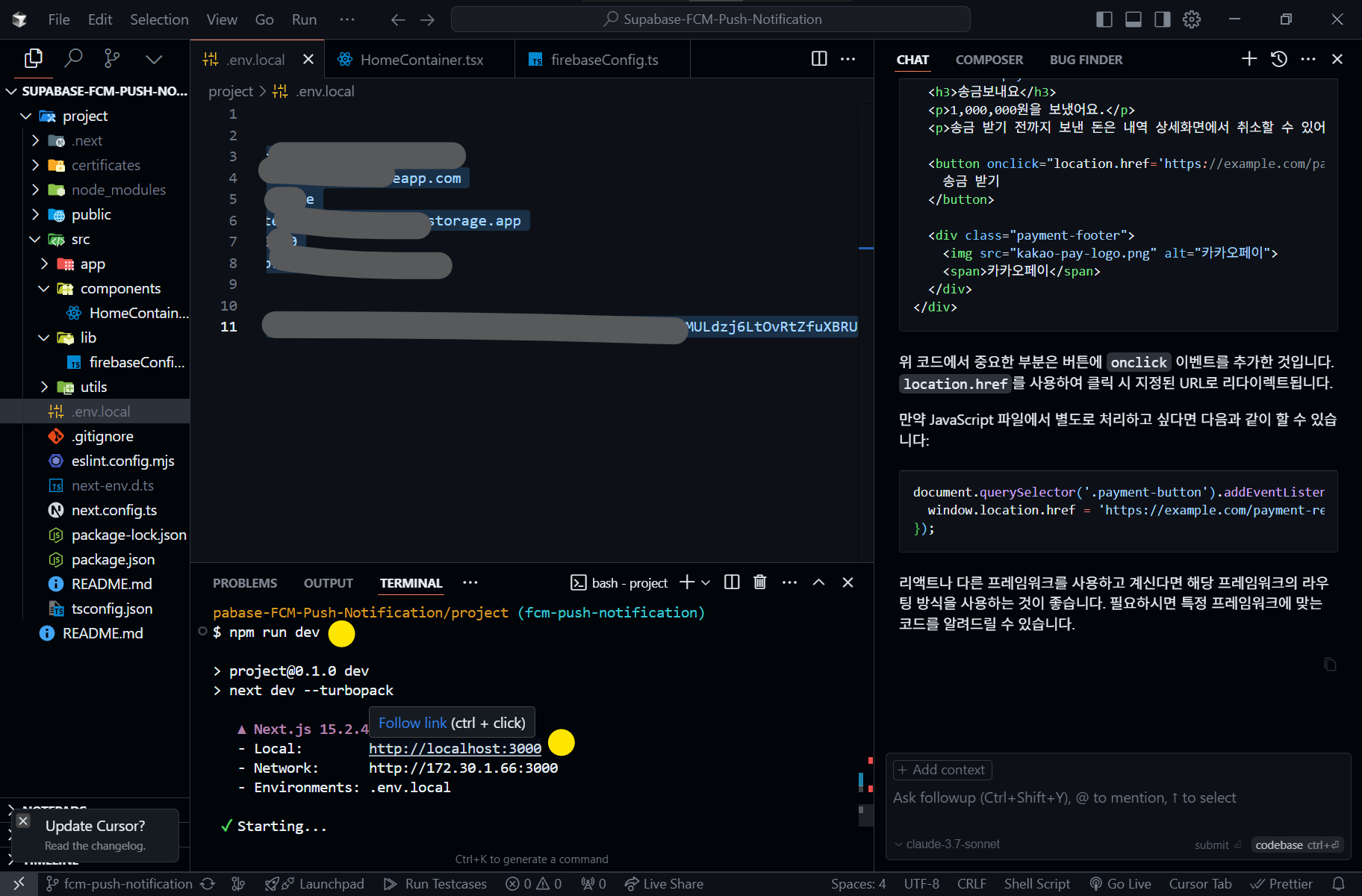 Next.js + Supabase + FCM 을 활용한 푸쉬 알림 기능 소스코드 저장소입니다. - LDK1009/Supabase-FCM-Push-Notification