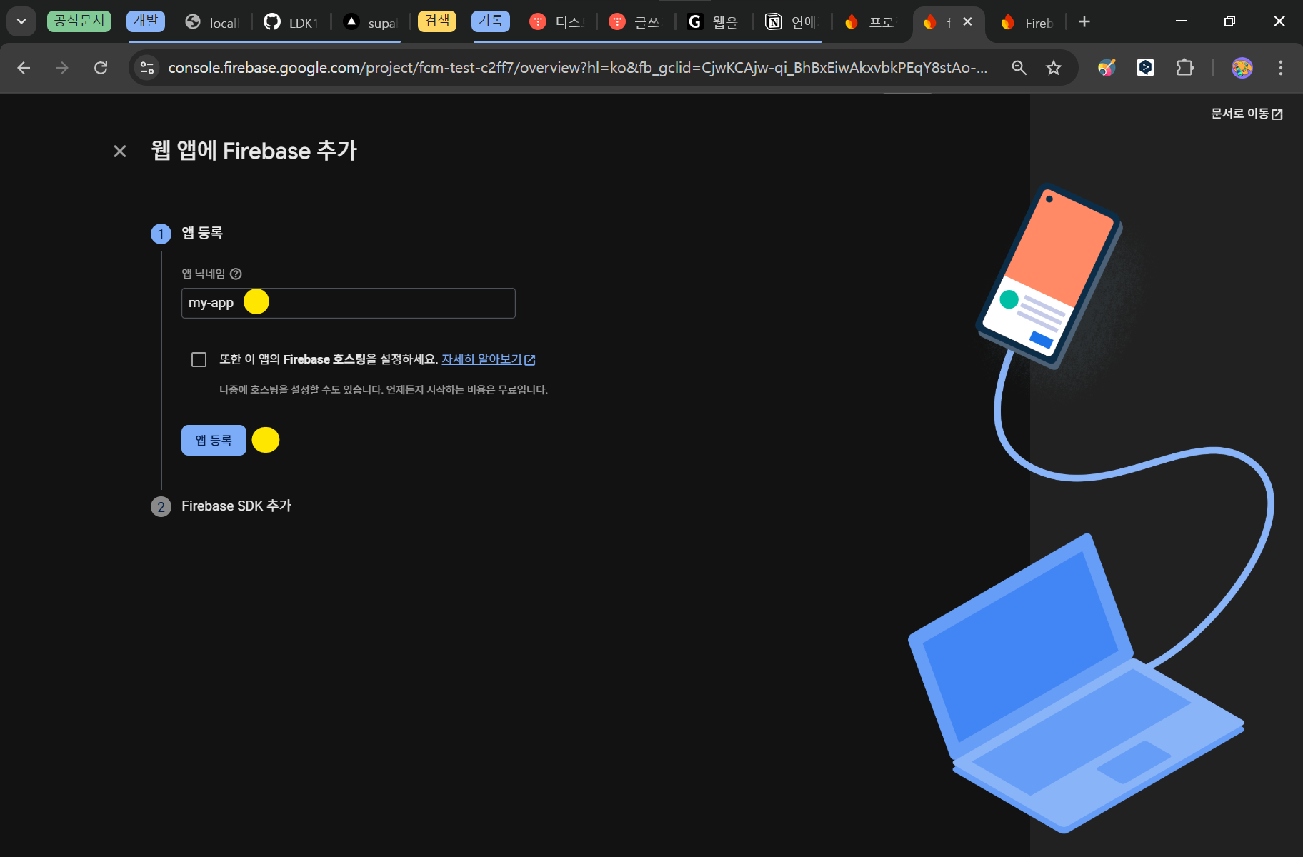 앱 이름 입력 후 앱 등록 버튼 클릭