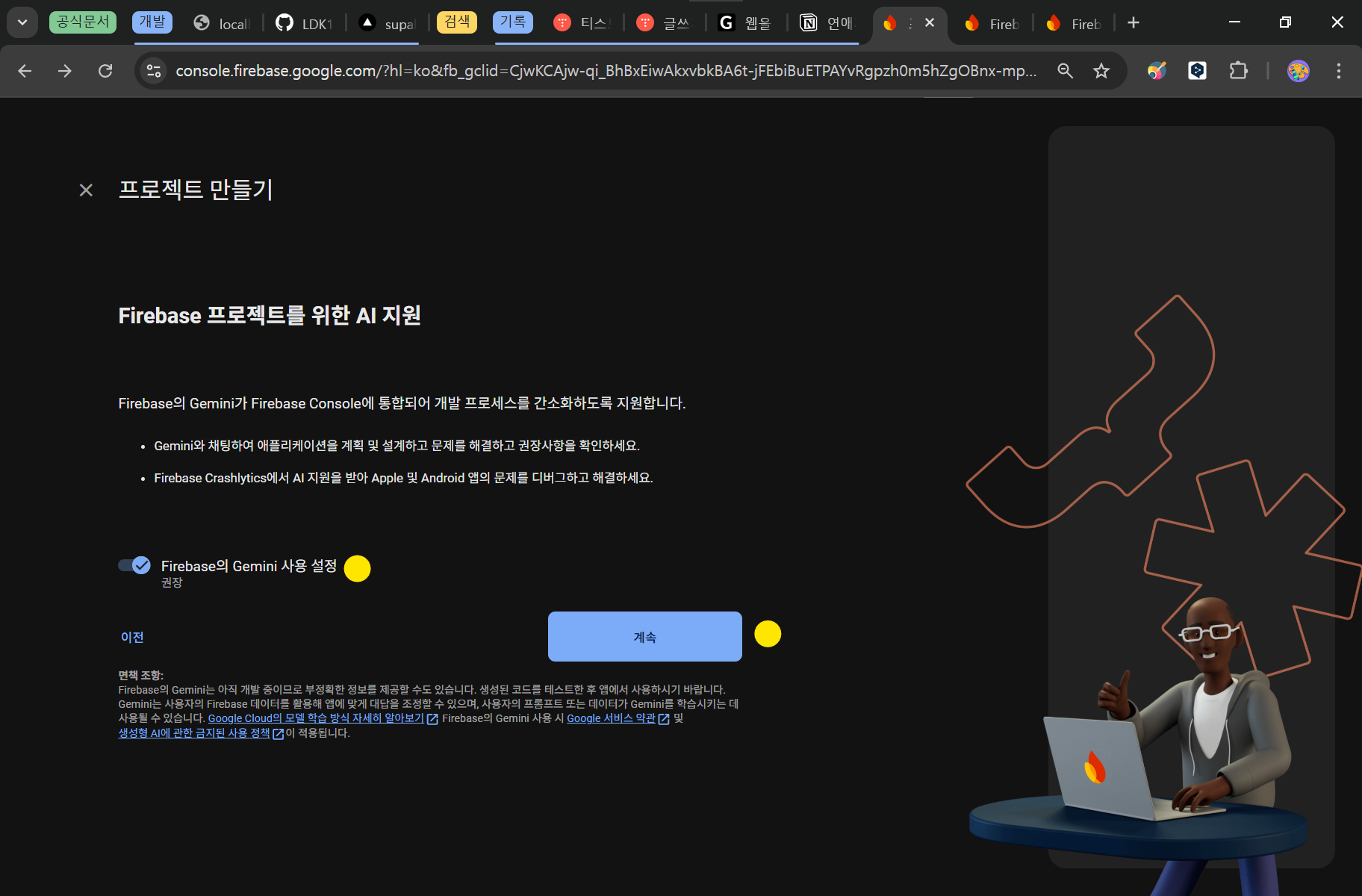'Firebase 프로젝트 만들기' 버튼을 클릭합니다.