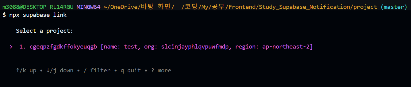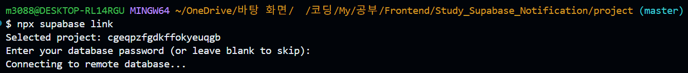 이 명령어는 로컬 Supabase 프로젝트를 원격 Supabase 프로젝트와 연결(링크)합니다.