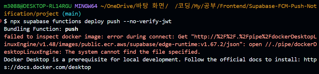 만약 supabase 프로젝트 실행이나 엣지함수 배포 시 오류가 발생한다면 아래 과정을 따라간 후 다시 명령어를 입력해보세요.