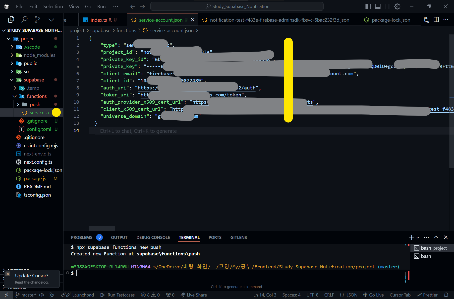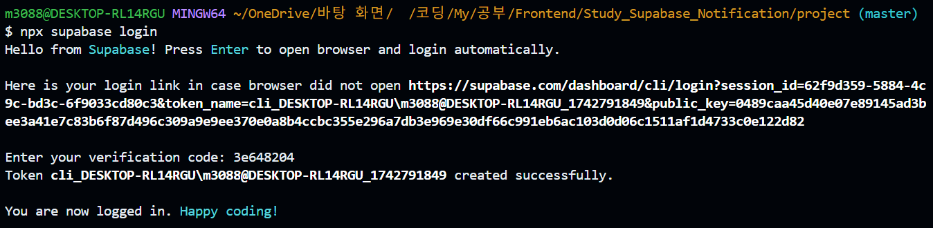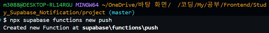 위 명령어는 Supabase 프로젝트에서 "push"라는 이름의 새로운 서버리스 함수(serverless function) 함수를 생성합니다.