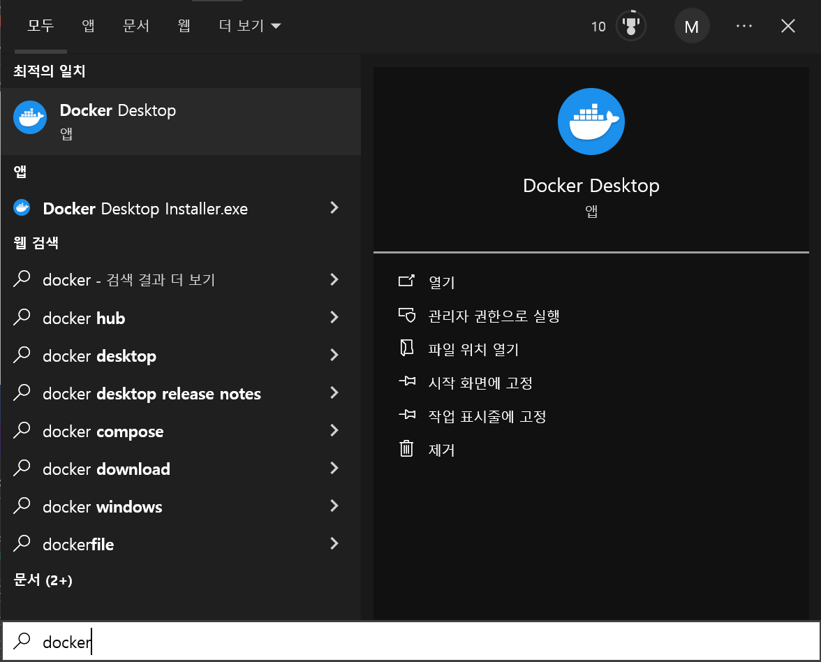 이 명령어를 실행하기 전 Docker Desktop을 필수적으로 실행해야합니다.
