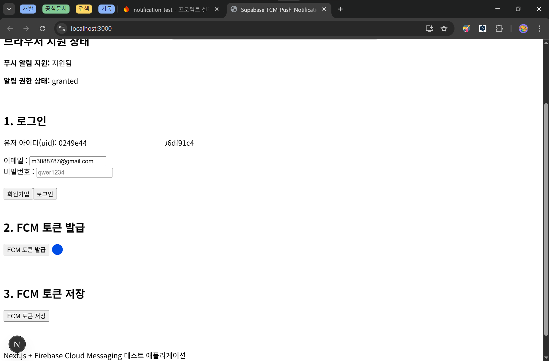 소스코드https://github.com/LDK1009/Supabase-FCM-Push-Notification GitHub - LDK1009/Supabase-FCM-Push-Notification: Next.js + Supabase + FCM 을 활용한 푸쉬 알림 기능 소스코드 저장Next.js + Supabase + FCM 을 활용한 푸쉬 알림 기