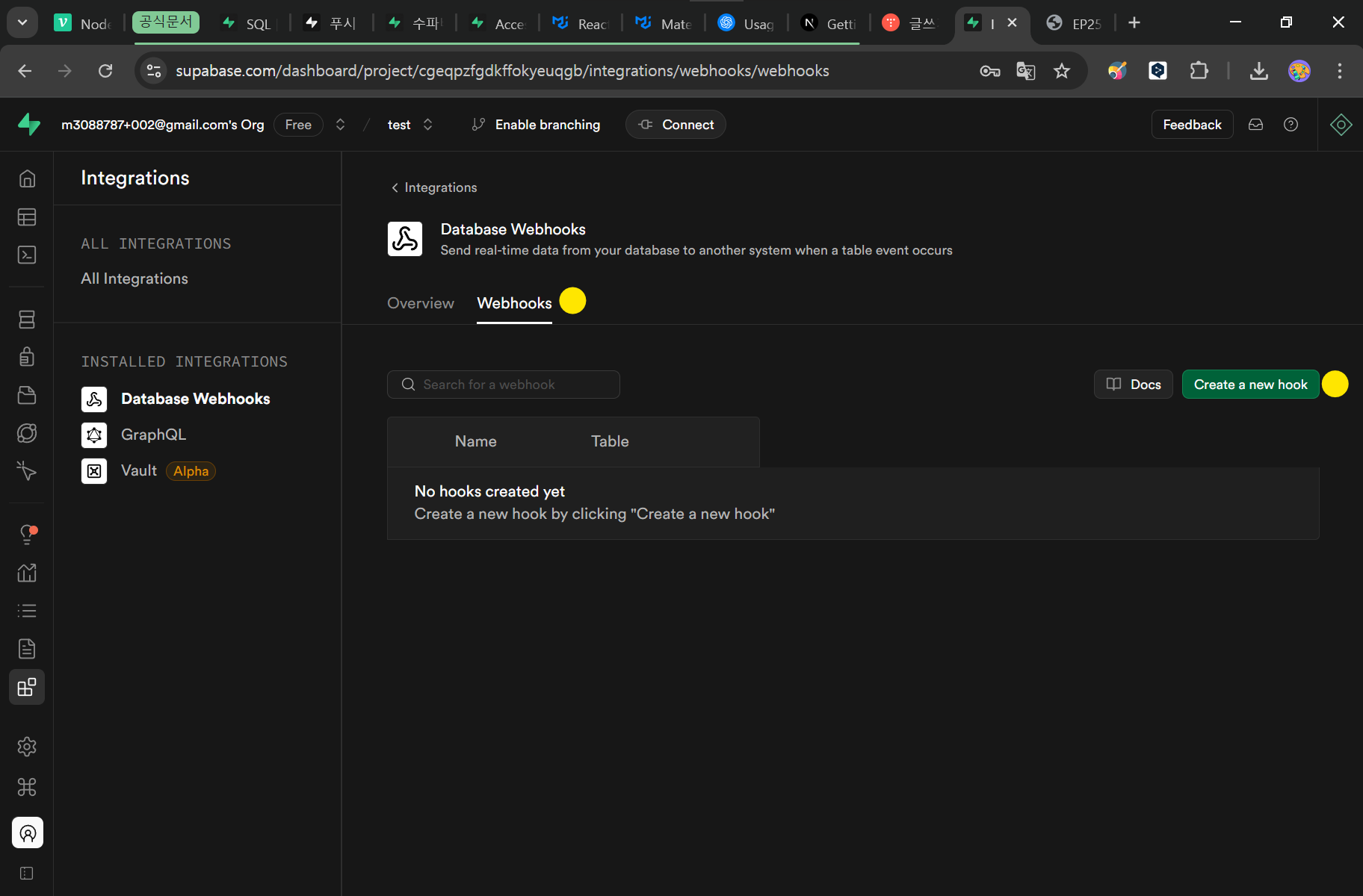 Supabase 웹훅 활성화 / 생성