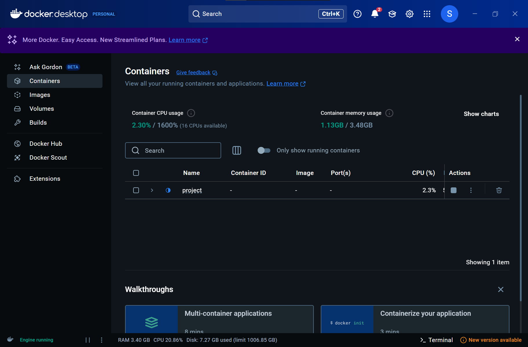 이후 supabase 프로젝트 세팅을 위해 필수적으로 Docker Desktop을 실행해야합니다 .