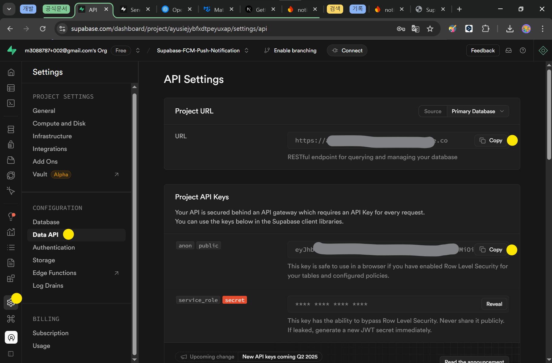 Supabase Dashboard > Project Setting > Data API