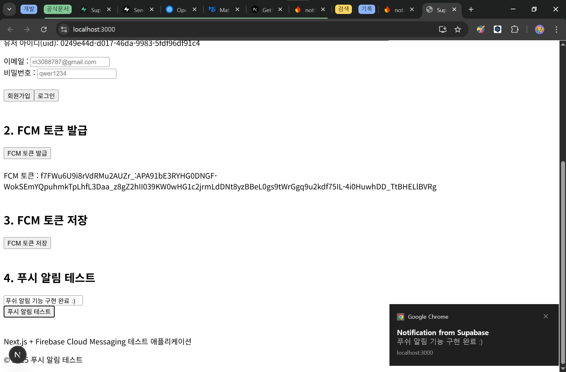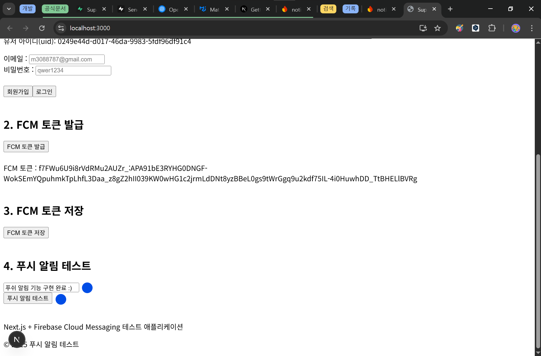 소스코드https://github.com/LDK1009/Supabase-FCM-Push-Notification GitHub - LDK1009/Supabase-FCM-Push-Notification: Next.js + Supabase + FCM 을 활용한 푸쉬 알림 기능 소스코드 저장Next.js + Supabase + FCM 을 활용한 푸쉬 알림 기