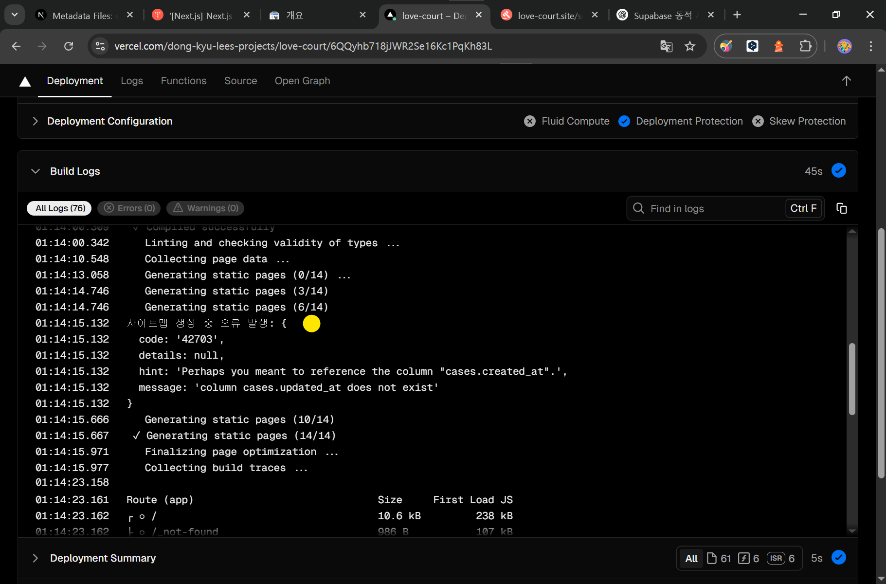 2. 배포 시 오류 발생이 의심된다면 빌드 로그를 확인한다 Vercel Project > Depoly > Build Log