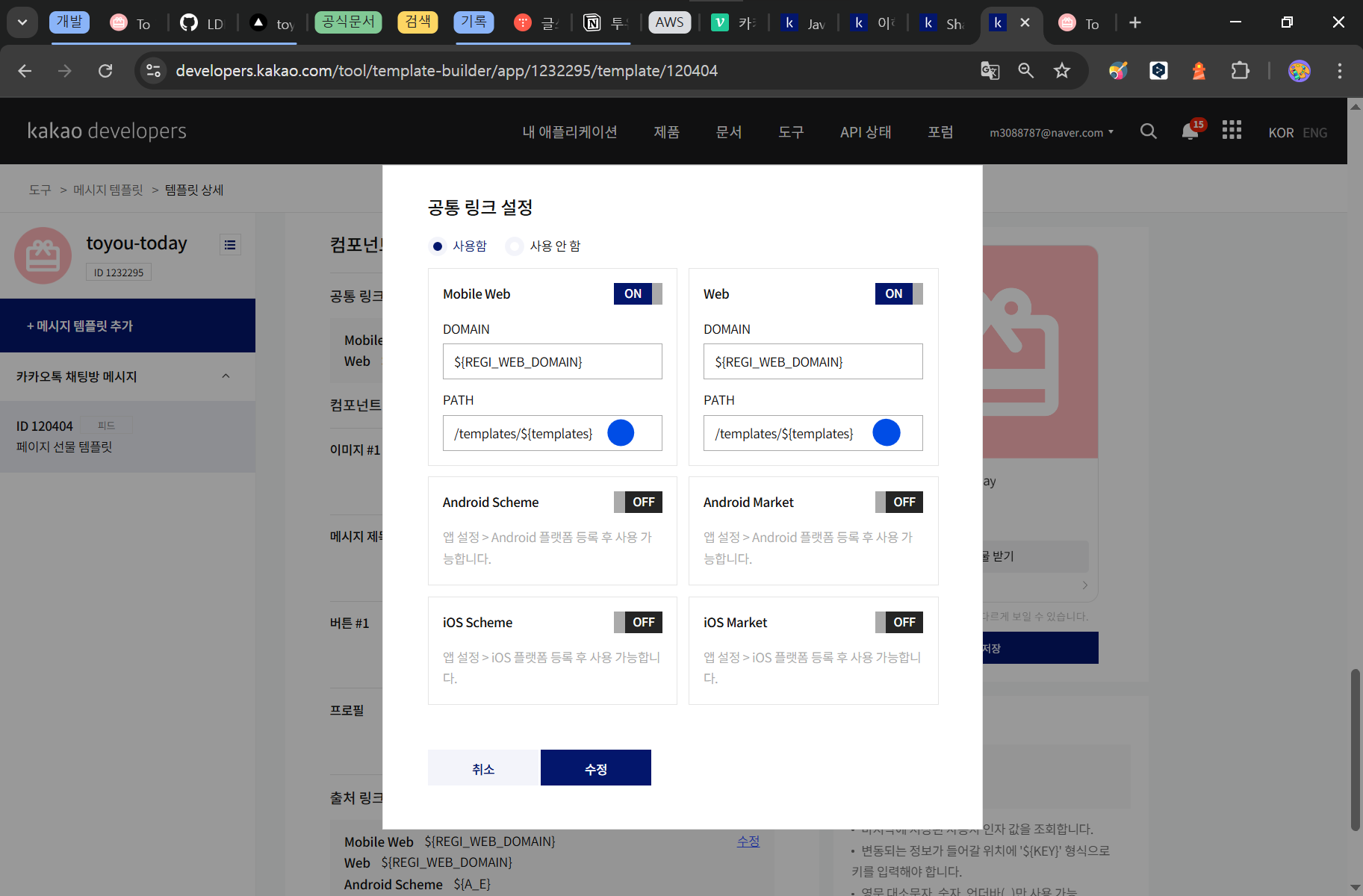 템플릿 수정을 마쳤다면 저장합니다.