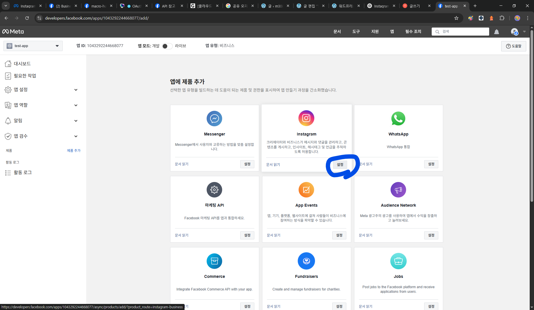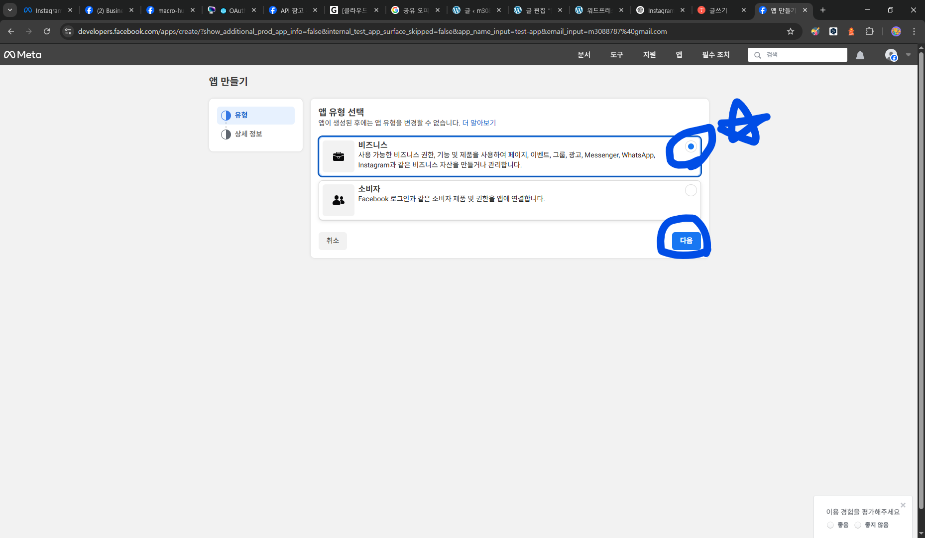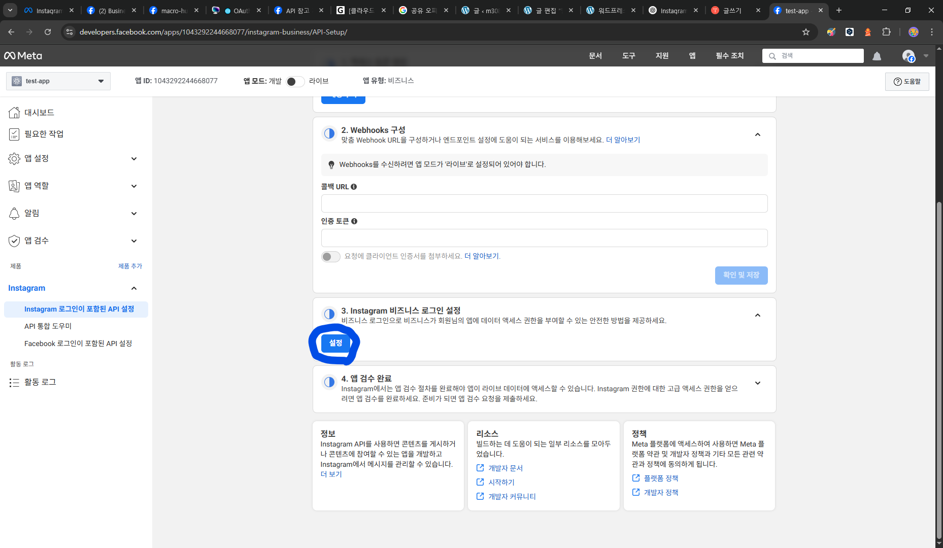 4. 테스트 계정은 '프로페셔널 계정'이어야함