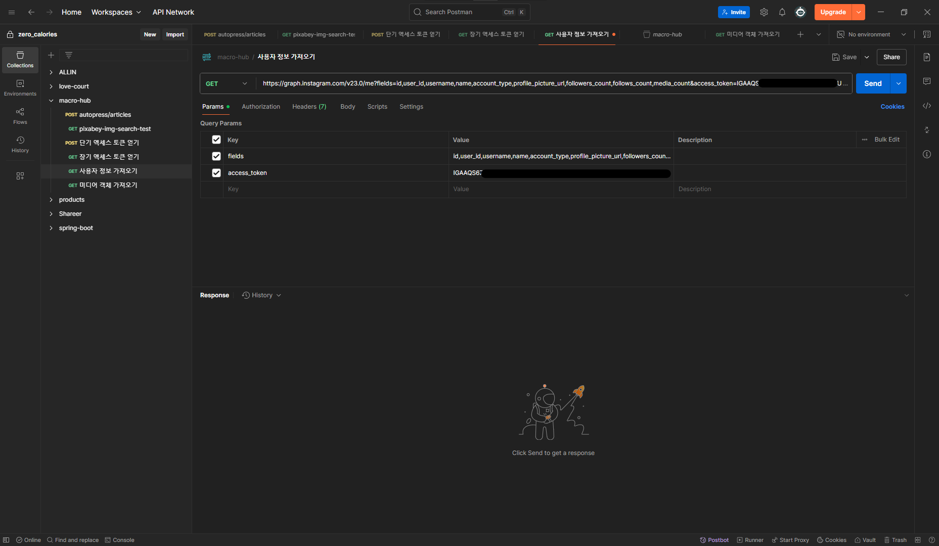 * 장기 액세스 토큰 : 수명 60일짜리 토큰 (단기 액세스 토큰 값으로 발급 가능)