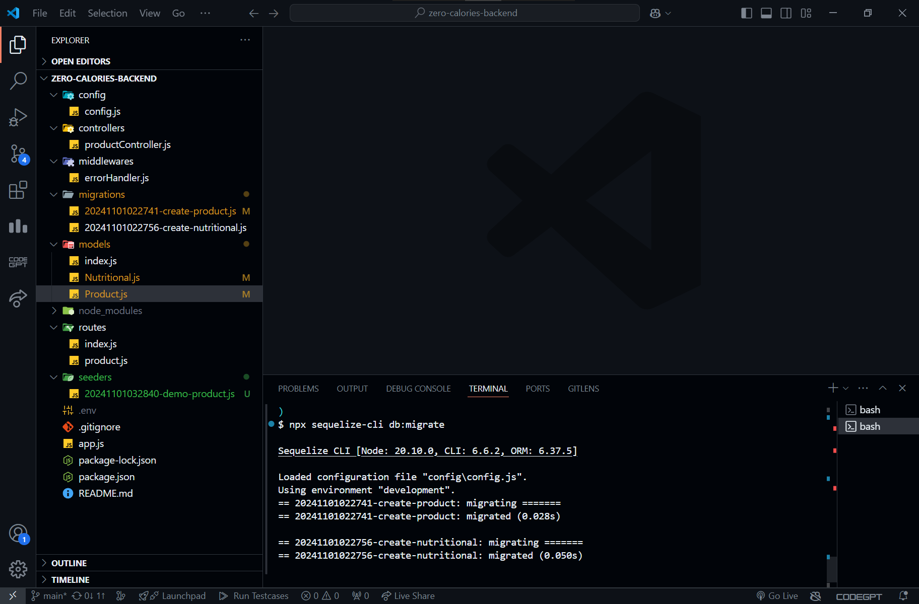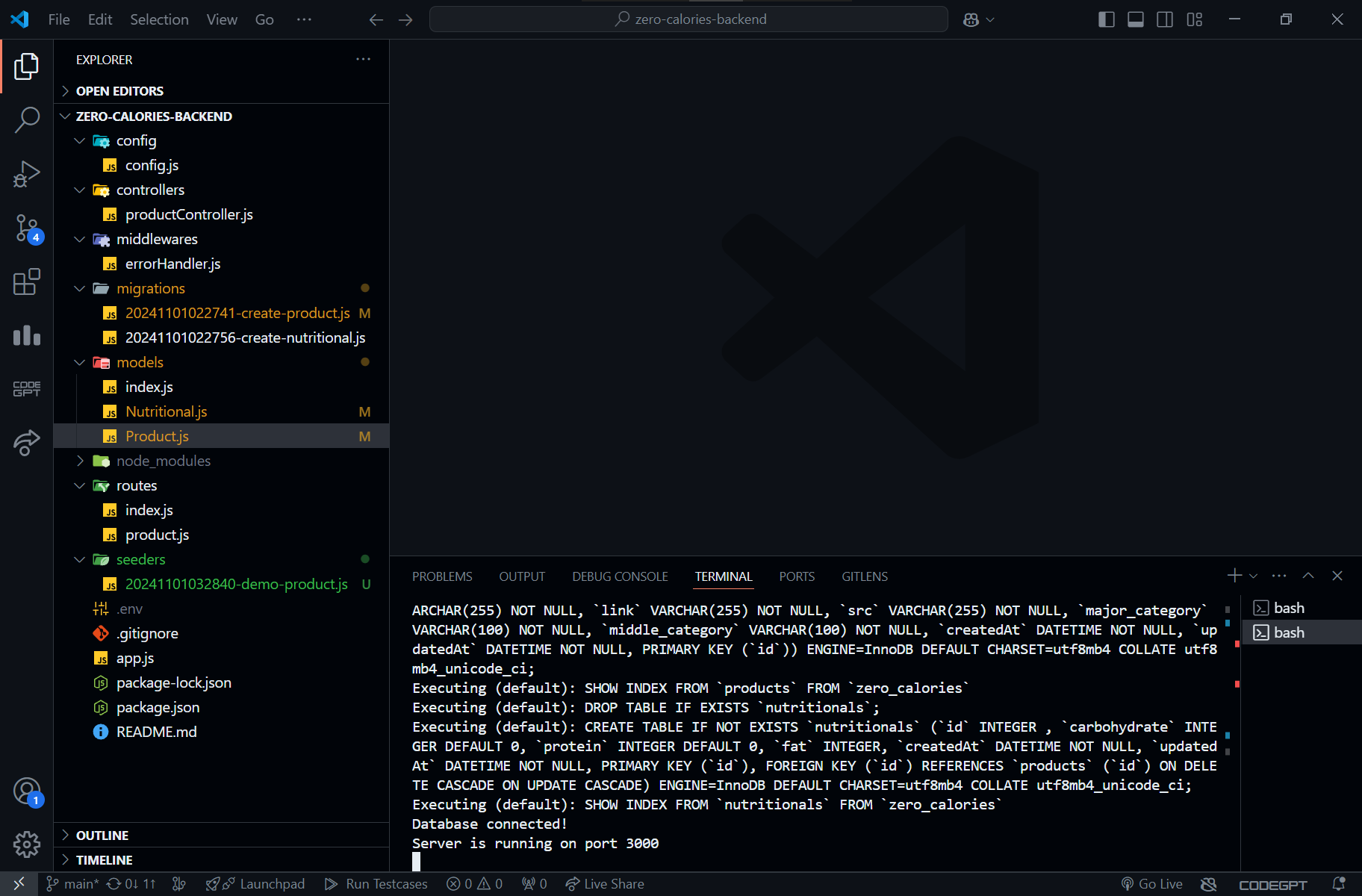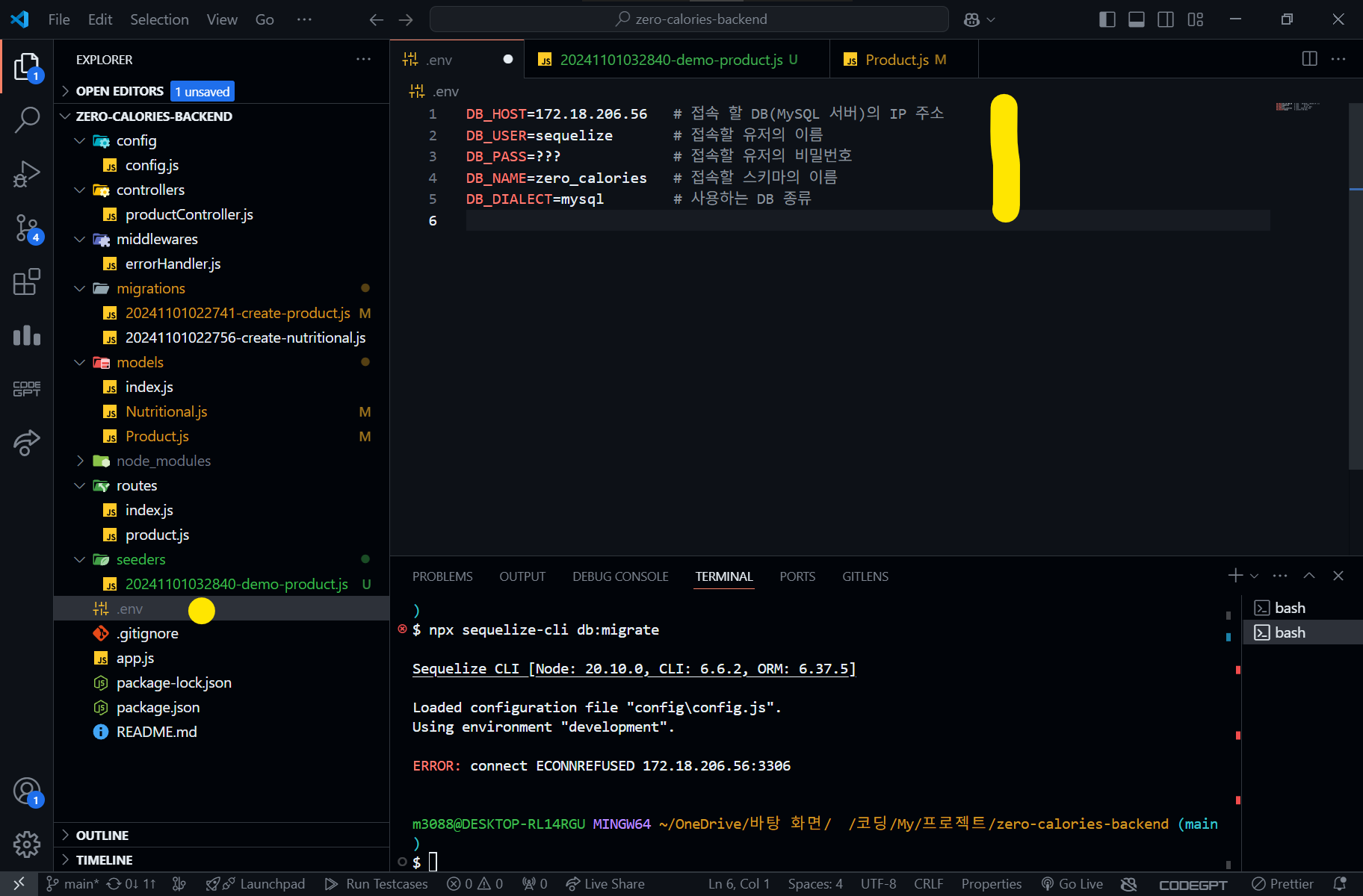 Error: SequelizeConnectionError: Unknown database 'zero_calories'
