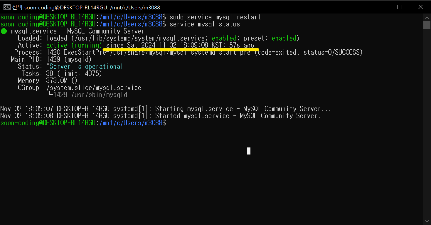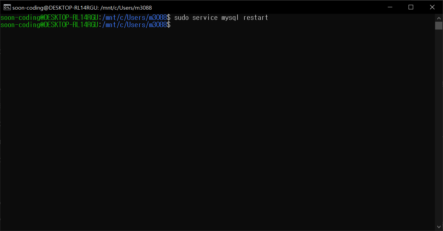 위 명령어를 통해 MySQL 서버를 재실행합니다.