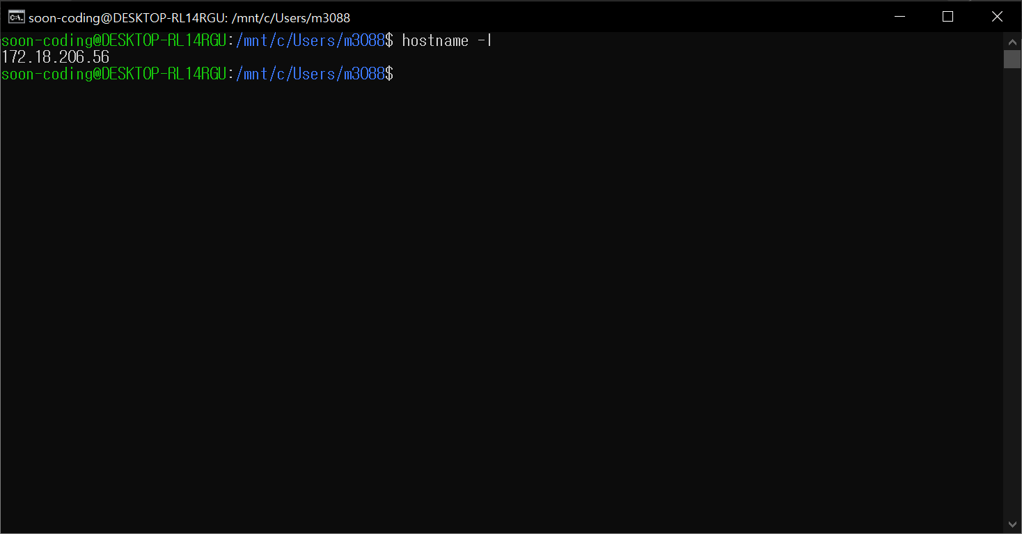 위치: hostname -I 명령어로 확인된 IP 주소는 WSL2 인스턴스 자체의 IP 주소입니다.