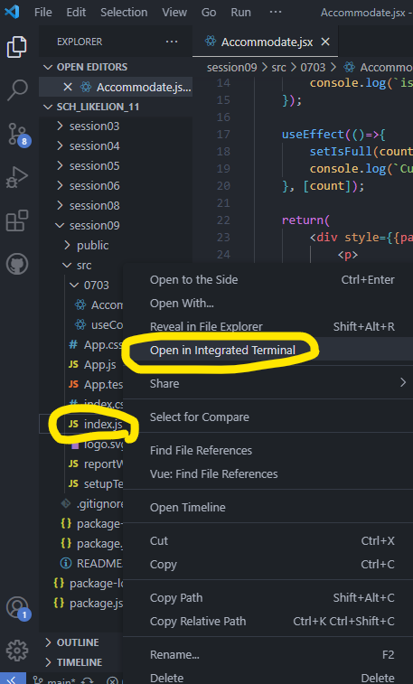 폴더를 열고 터미널을 열고 npm start를 입력하니 위와 같은 오류가 발생했다.