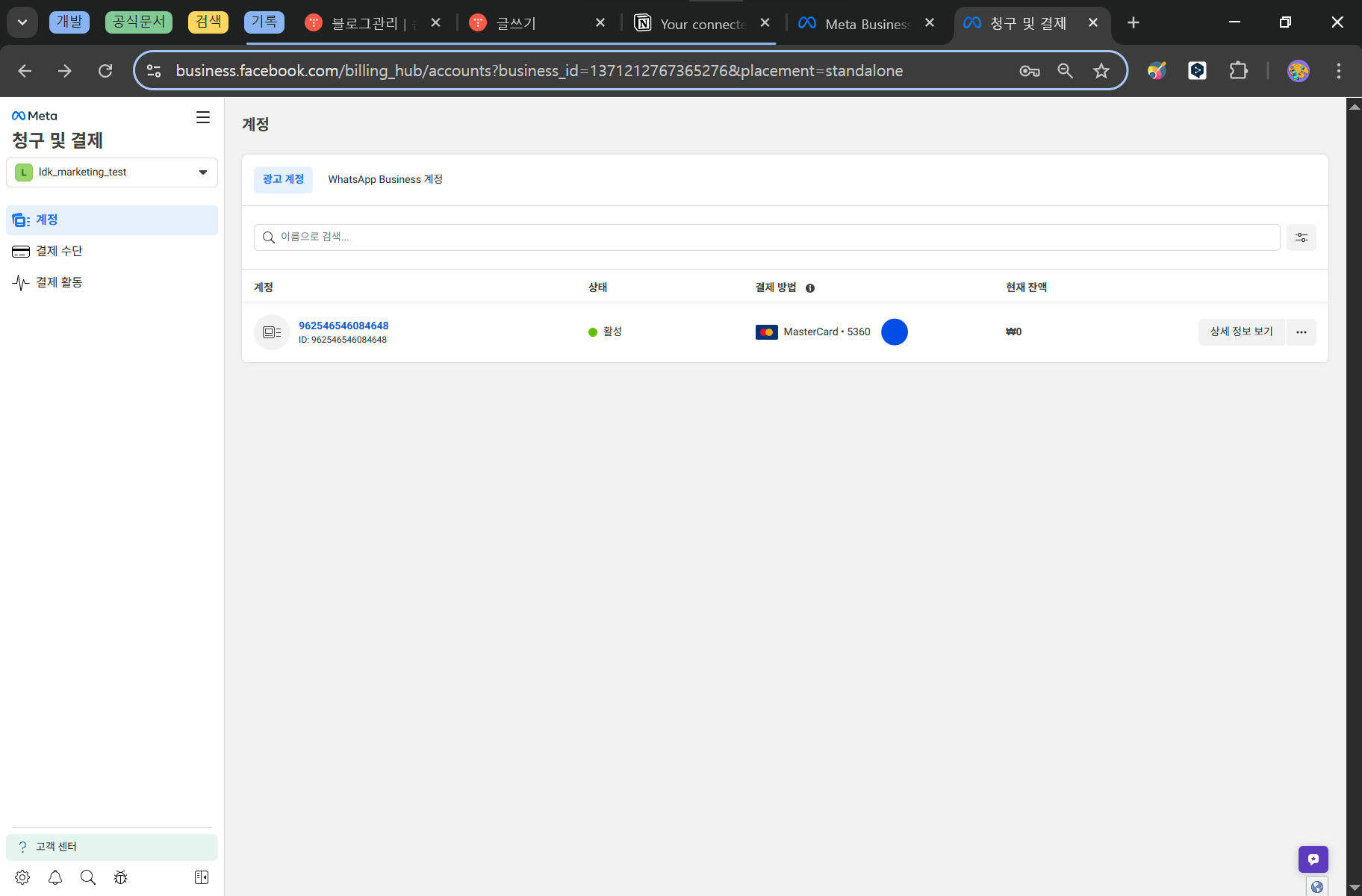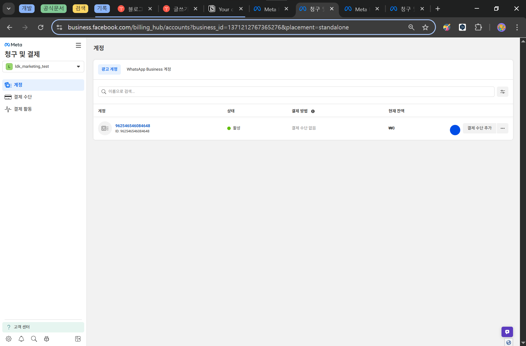 광고 계정이 생성된 것을 확인할 수 있으며 이어서 결제 수단을 추가합니다.