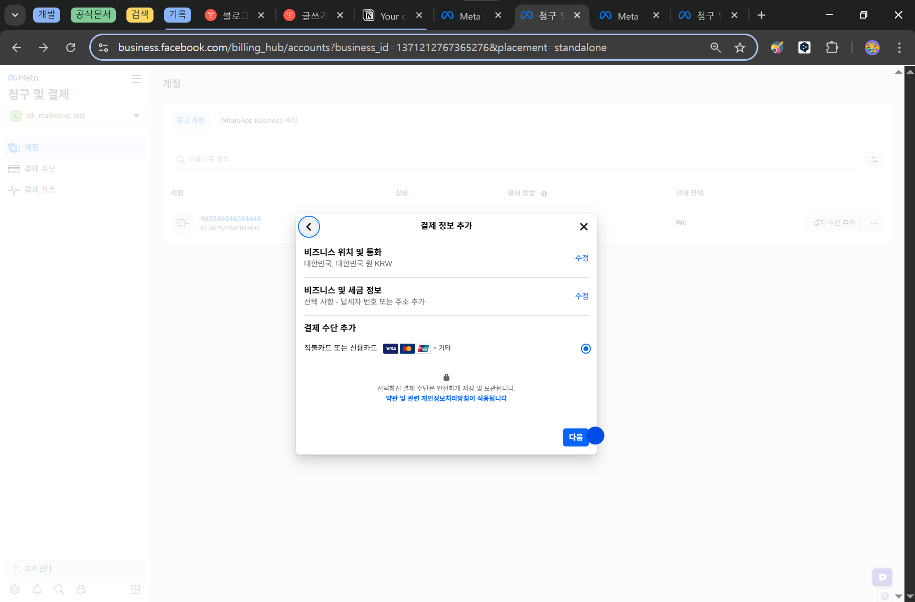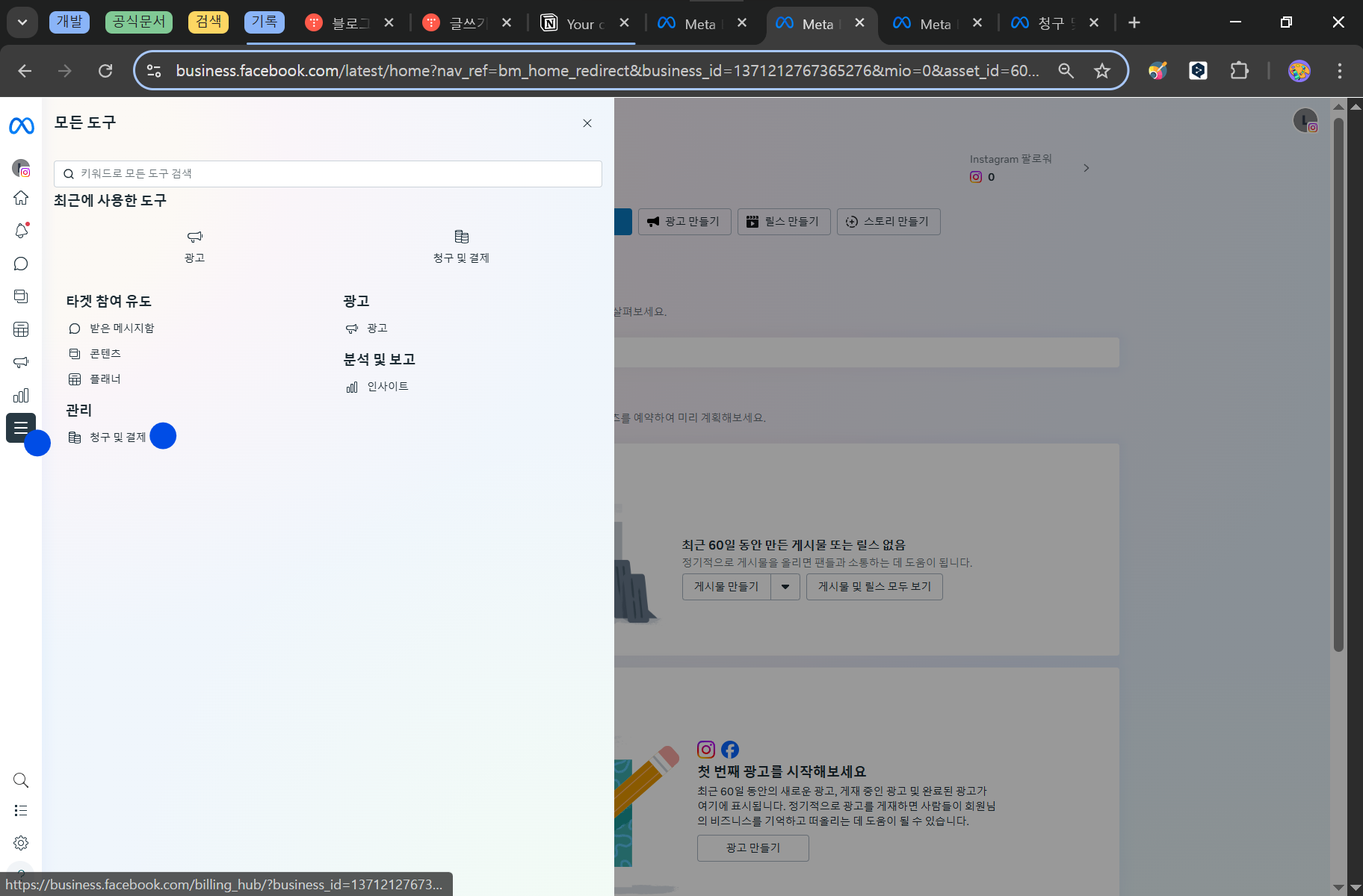 메타 비즈니스 홈 > 사이드바 > 청구 및 결제로 이동합니다.