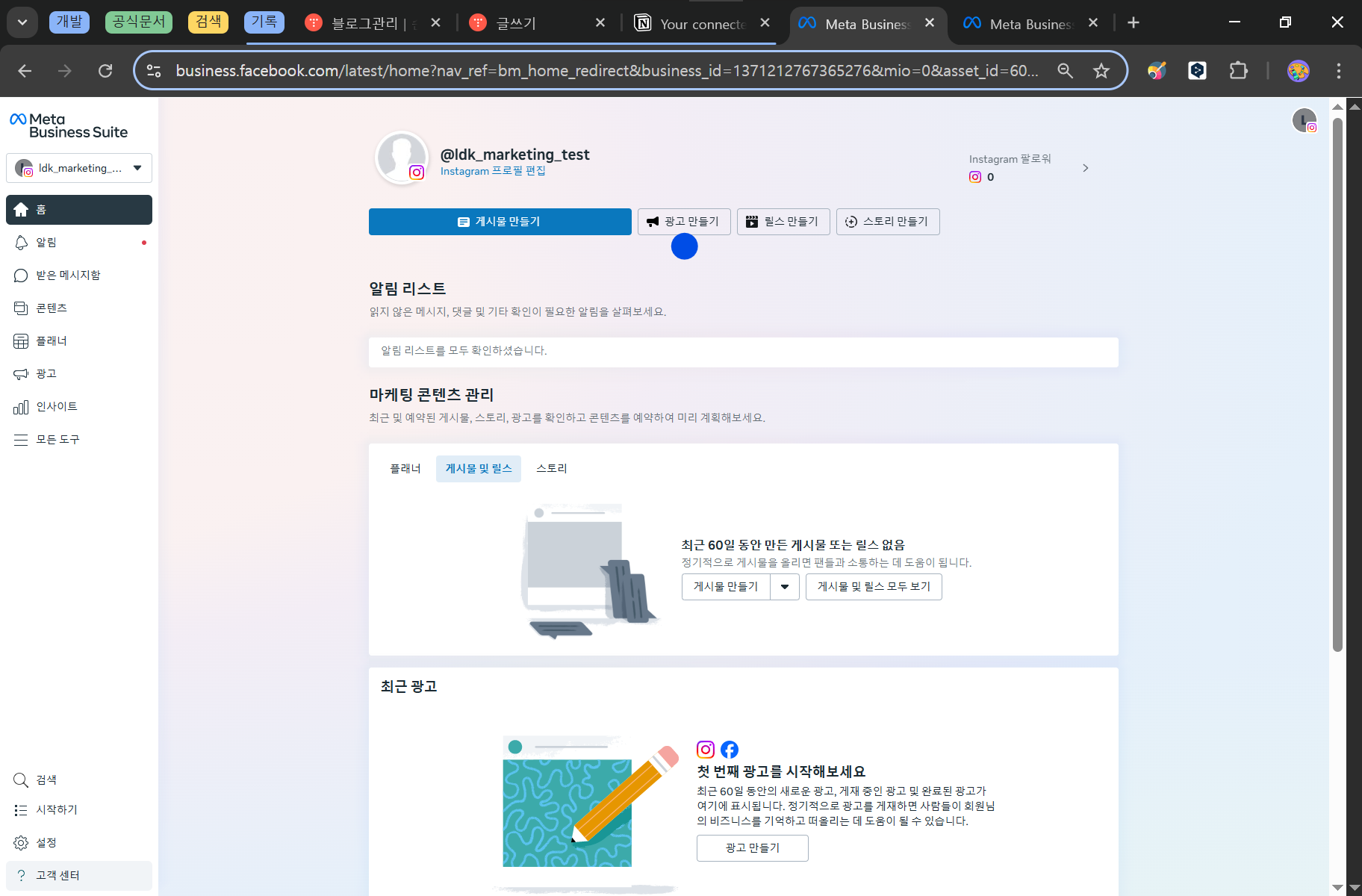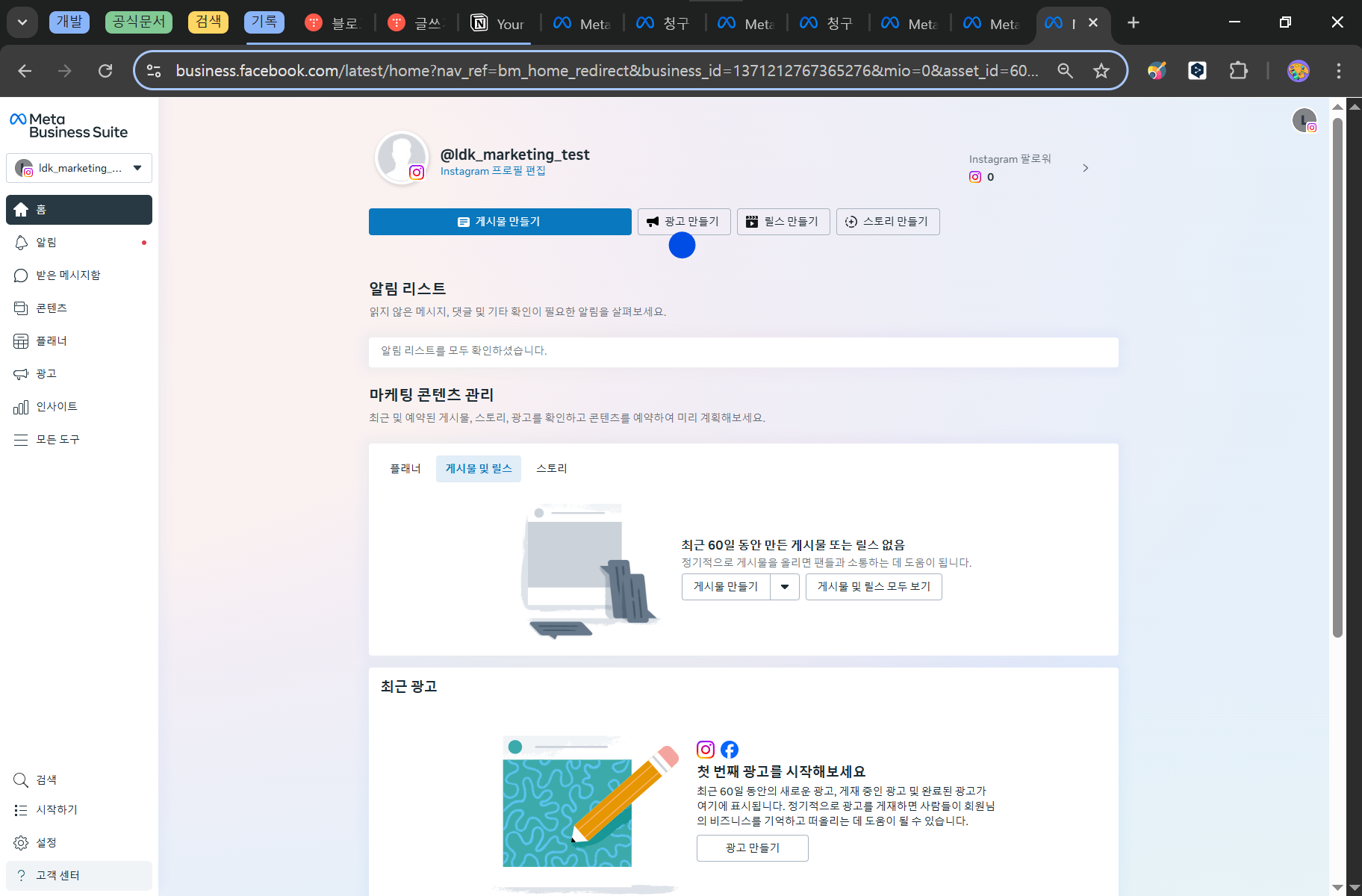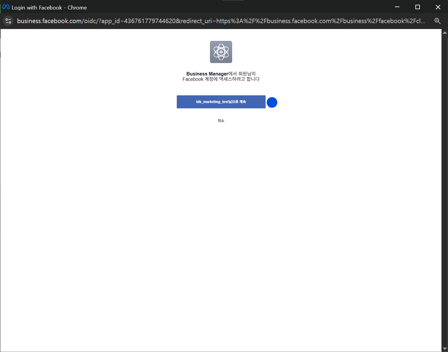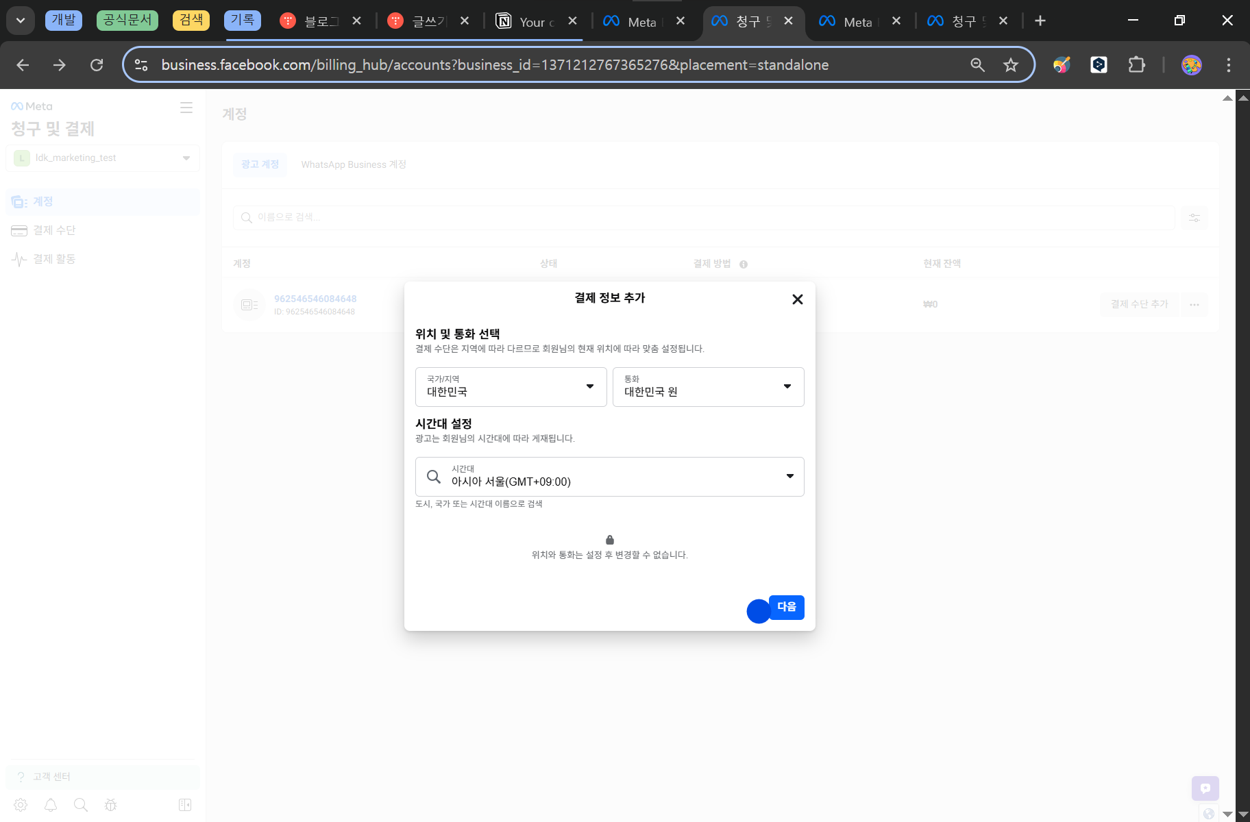 당황하지 않고 해당 창을 닫고 메타 비즈니스 페이지를 새로고침합니다.