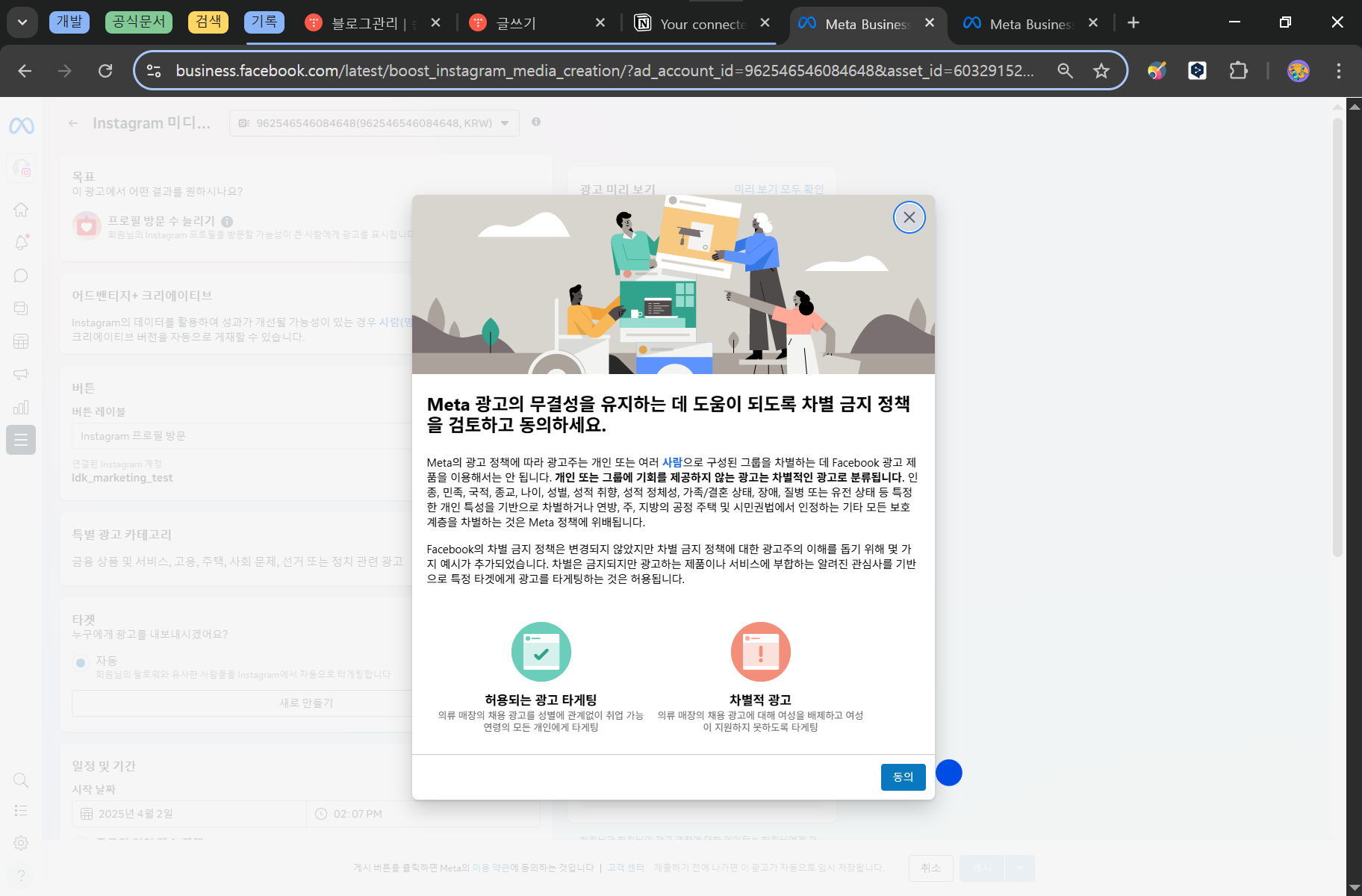 광고 설정 페이지에서 차별 금치 정책을 동의합니다.