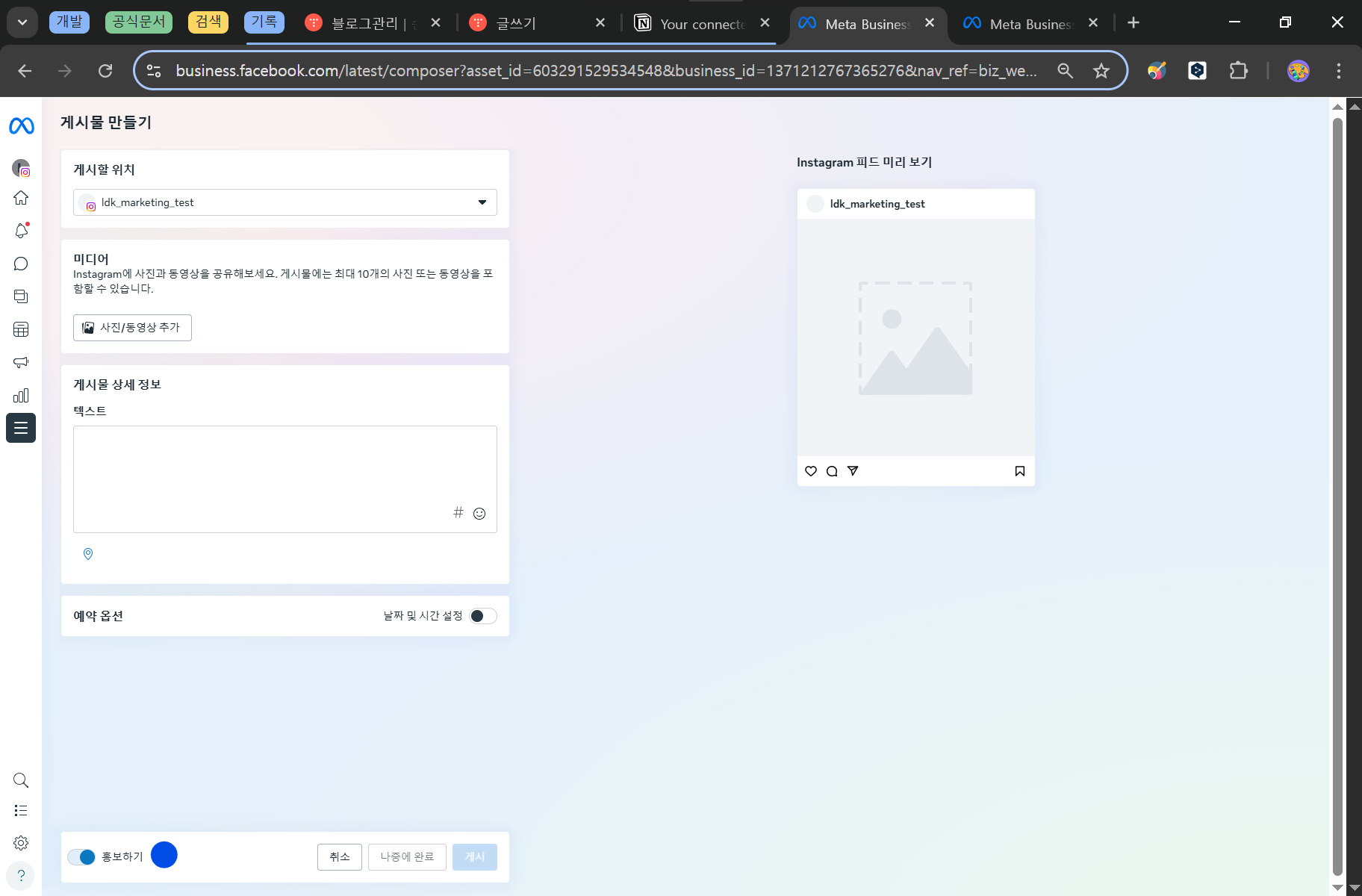 결제수단이 정상적으로 등록되어있다면 이전과 달리 이제 게시물 만들기 버튼을 확인할 수 있습니다.