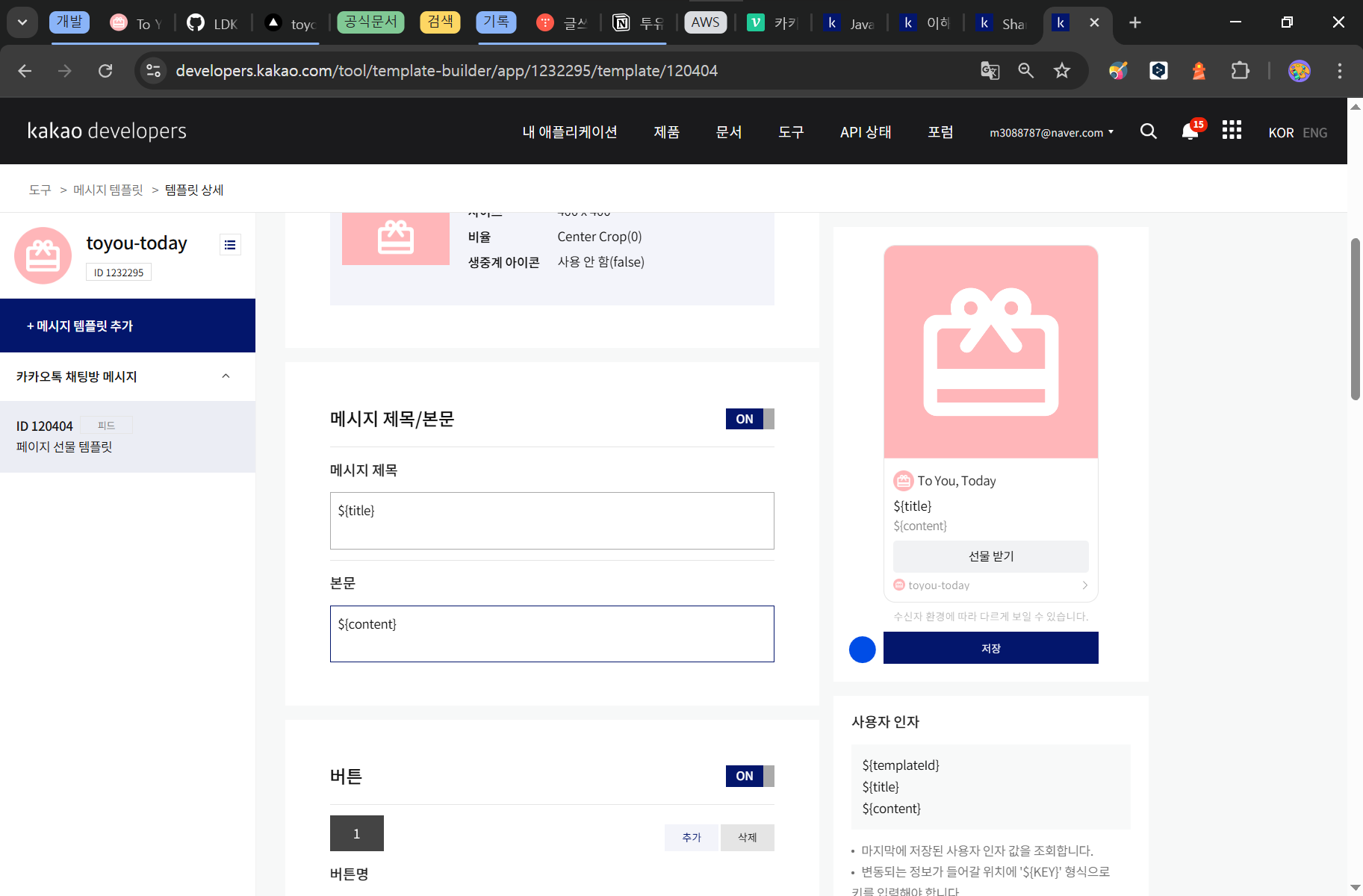 카카오톡 공유하기 메시지에서 변수를 사용해 동적 메시지 보내는 방법